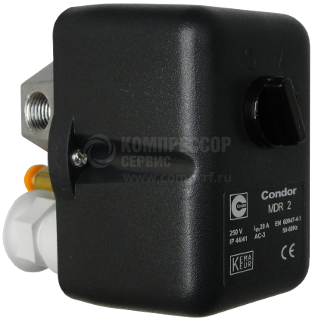 Реле давления CONDOR MDR 2 (прессостат), применяются для управления поршневыми компрессорами - они выступают в качестве силового устройства, напрямую замыкая и размыкая цепь питания приводного электродвигателя в зависимости от рабочего давления, подаваемого на механическую часть прессостата. Однофазное. В комплектации имеет разгрузочный ( стартовый) клапан. Коммутационная способность до 2,2 кВт. Разница между давлением включения и выключение 2 бара.